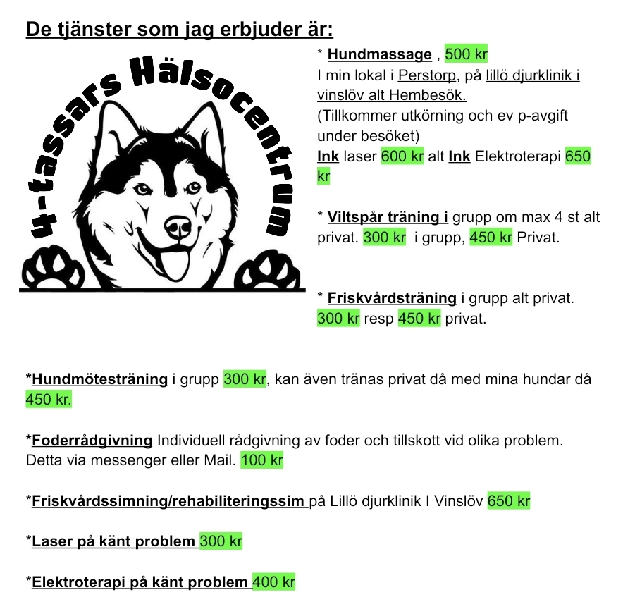 Jag är säker på att om det inte vore för Julias kunskap och arbete hade Agnes fått höft problem med åren! Men tack vare Julias massage och styrkeövningarna hon har lärt mig vet jag att jag kommer ha en frisk hund enda in i det sista!! Våra hundar förtjänar det bästa och det är precis det Julia ger!
